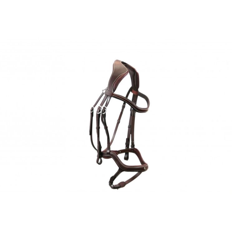 Antares“Precision” headpiece was designed by Antares Research and Development together with vets and osteopaths to improve the comfort of the horse. With its special cutting which releases totally the 1st cervical vertebras, it avoids the discomfort that might be generated by the pressure of a classical headpiece on the nape