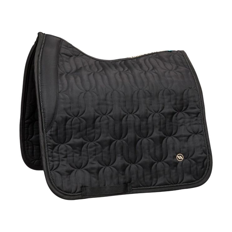 "Deep Nights" Dressage Saddle Pad is a refined addition to our highly regarded Nights Collection, the saddle pad is available in jet black and is beautifully finished with a black piping and black-on-black embroidery. The Back on Track logo is made in rose gold, which gives the saddle pad an elegant look.
