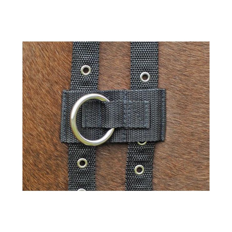 Höhenverstellbarer Ausbindering zum Einschnallen in eine Doppelstrupfengurtung einzeln.