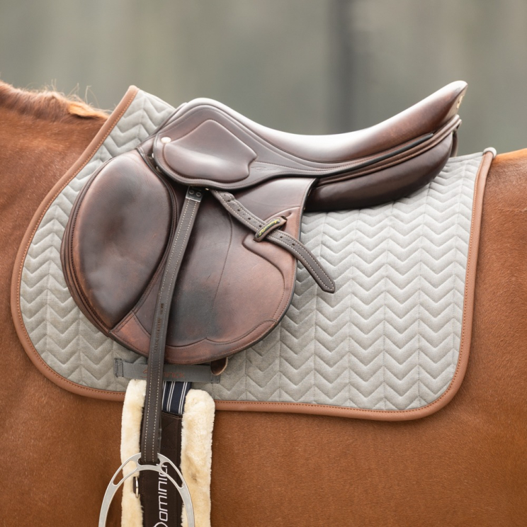 Diese Dominick Schabracke ist speziell für den Springsattel geformt und hat das wunderschöne Fischgrätmuster.