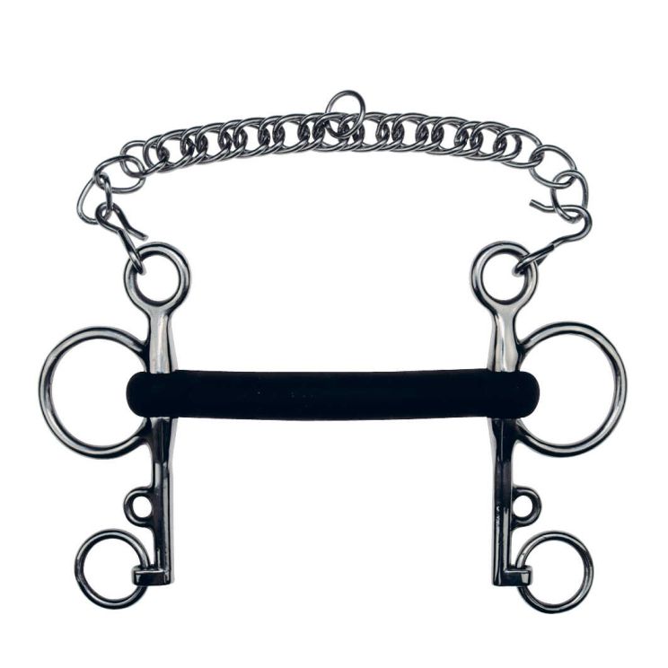 Gummi pelham gebiss mit einem ungebrochenen Mundstück. 14 cm lange Schenkel.