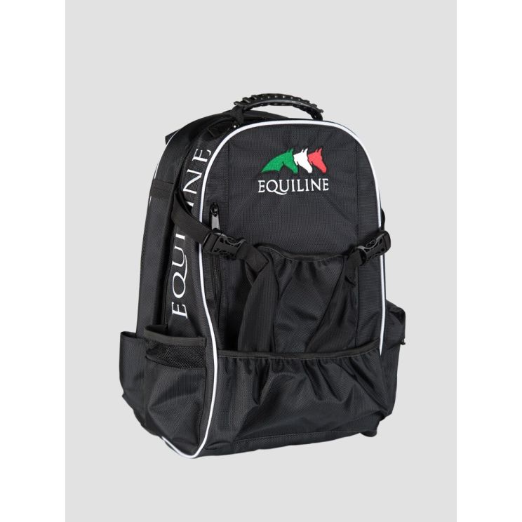 EquilineMulti-pocket backpack in sturdy nylon with ergonomic handle and padding shoulder pieces and back in breathable mesh.