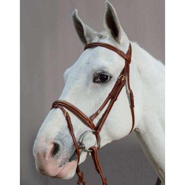 Bridle in English leather with combined noseband with decorative stitching as well as on the front strap.
