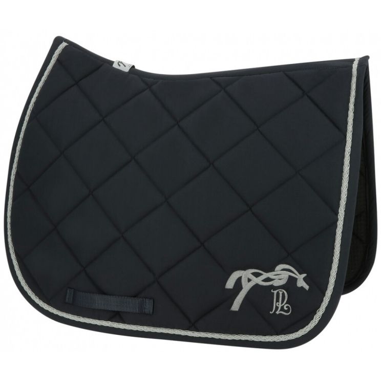 From the PÉNÉLOPE COLLECTIONS, the Pénélope Tress Saddle Pad is beautifully adorned with a braid along its border, matching the embroidered Pénélope logo on the left side.
