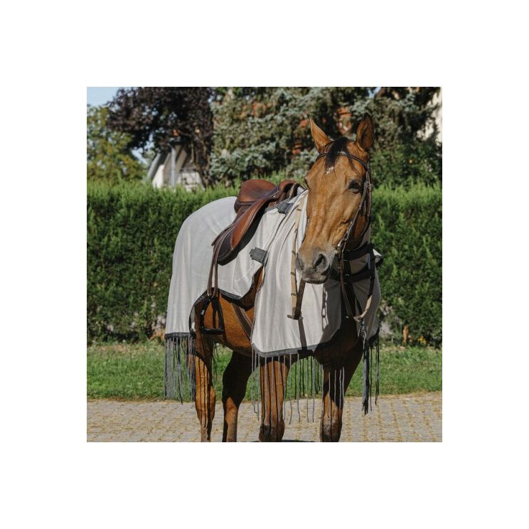 Riding WorldEquiped with fringes to repel insects. Can be used as an exercise sheet or as a combo with its removable neck cover.