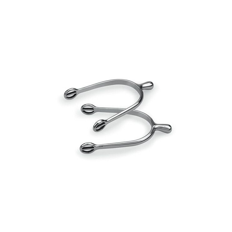 ShiresSporen von Shires aus rostfreiem Stahl mit einem abgerundeten Ende. Diese Sporen haben eine direkte Einwirkung, da die Oberfläche am Ende der Sporen recht klein ist.