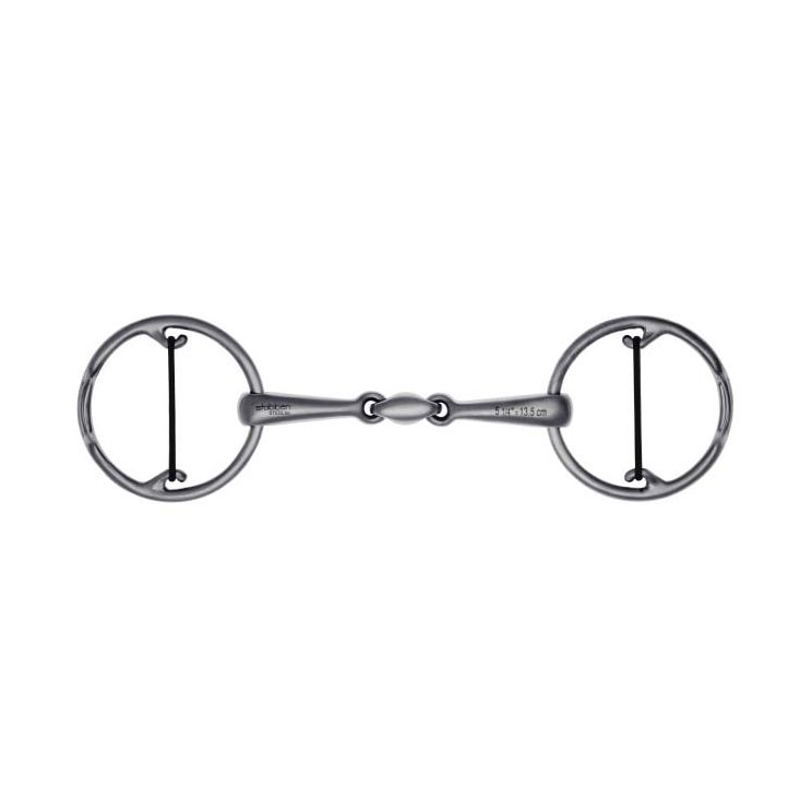 The "bucephalus pro horse bit" is a soft action loose ring snaffle bit. The reins are attached to the bit with two strong rubber bands within the O-rings.