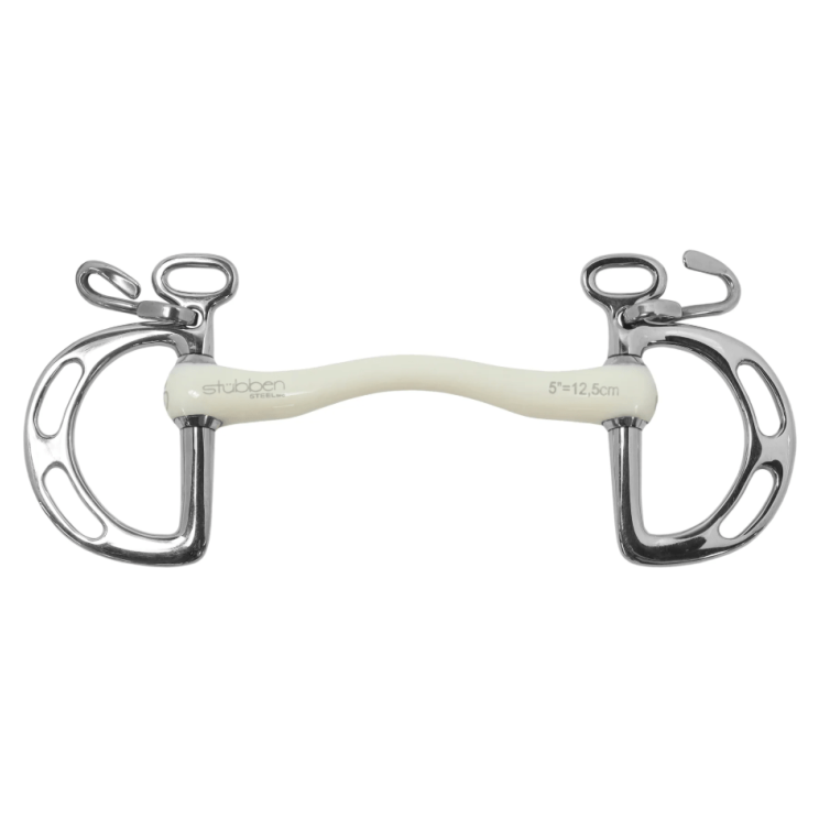 Het mondstuk van de Fine Line Flex Kimblewick is gemaakt van flexibel, voedselveilig PU en biedt een warmer gevoel in de mond, zelfs bij lagere temperaturen.