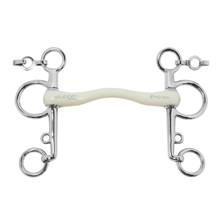 Het mondstuk van de Fine Line Flex Pelham is gemaakt van flexibel, voedselveilig PU en biedt een warmer gevoel in de mond, zelfs bij lagere temperaturen.