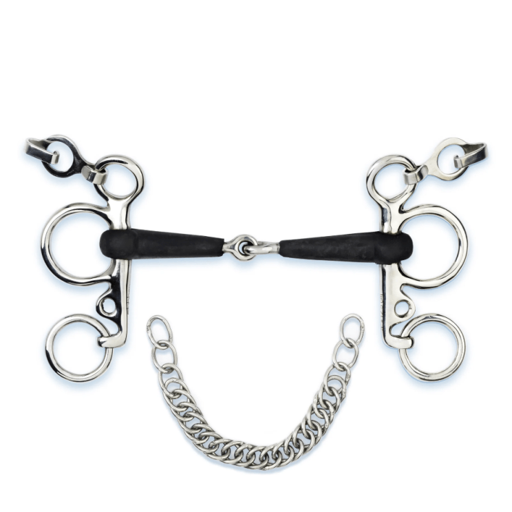 De Pelham rubber gecoat enkelgebroken is voorzien van een met rubber omhuld roestvrijstalen mondstuk en is speciaal geschikt voor paarden die metaal in de mond minder prettig vinden of baat hebben bij een zachter gevoel.